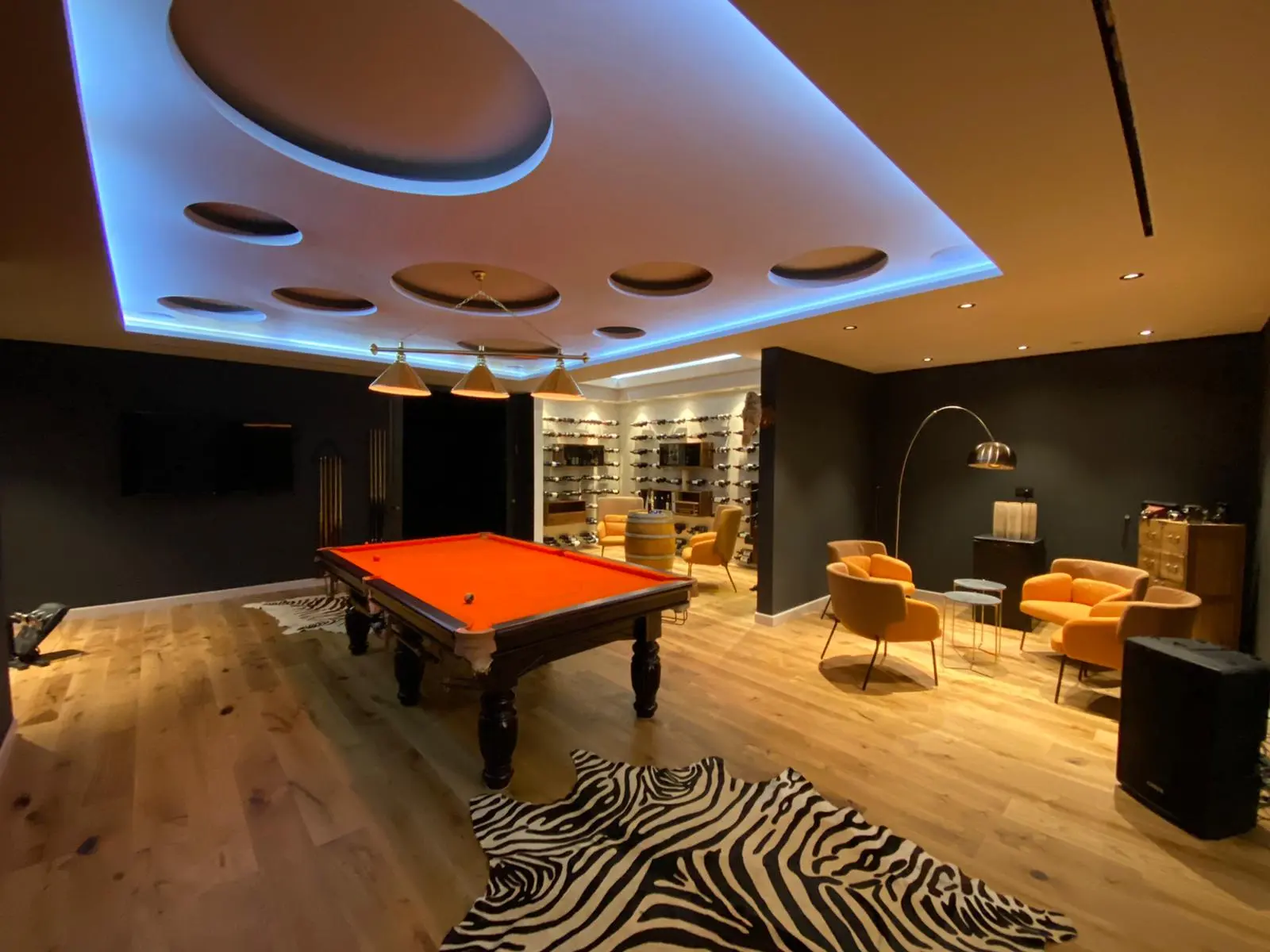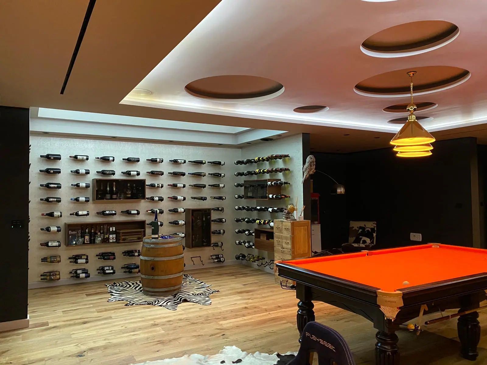 BASMENT – its the main playground of the house pool table, a stunning cinema theater , wine collecting and games for kids.