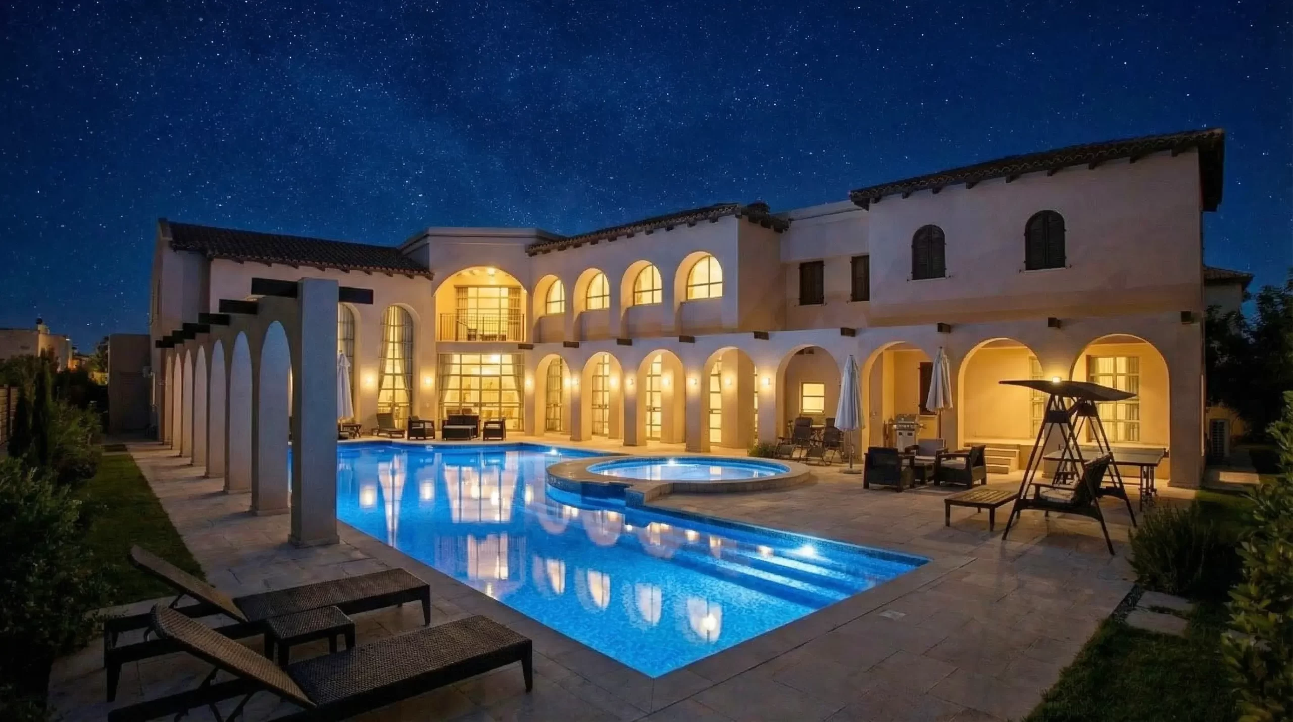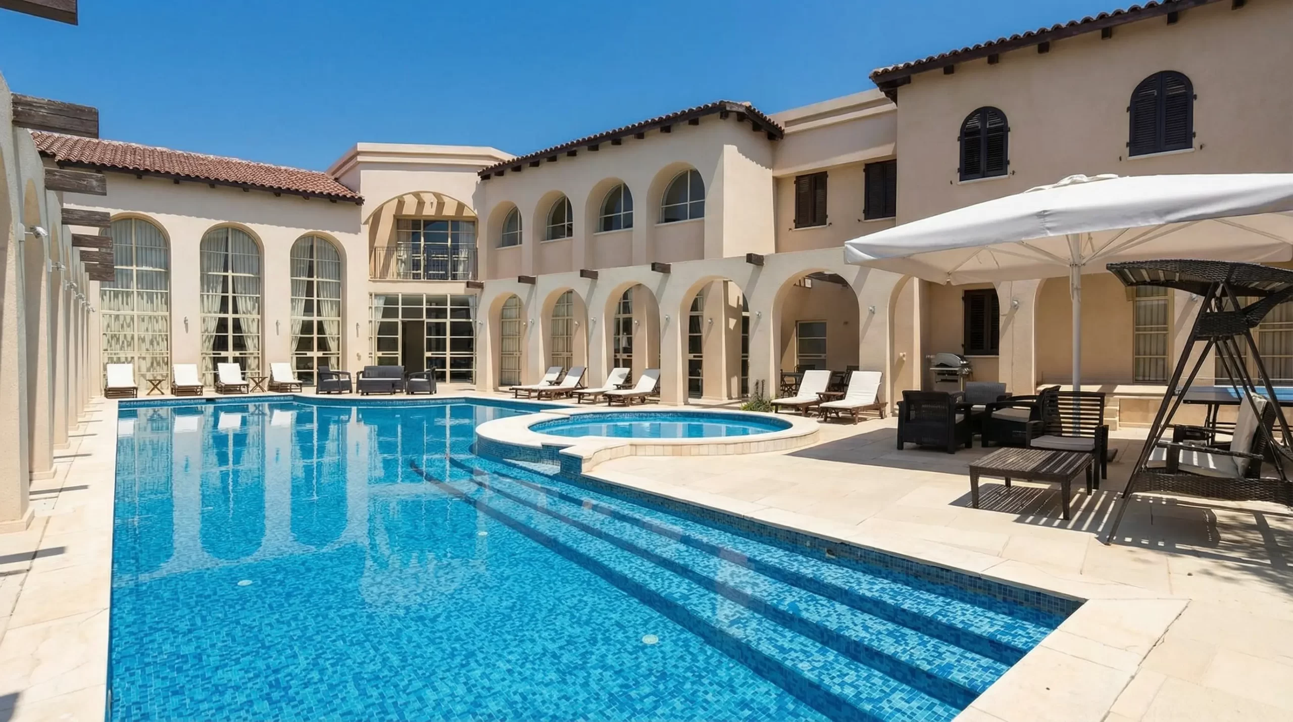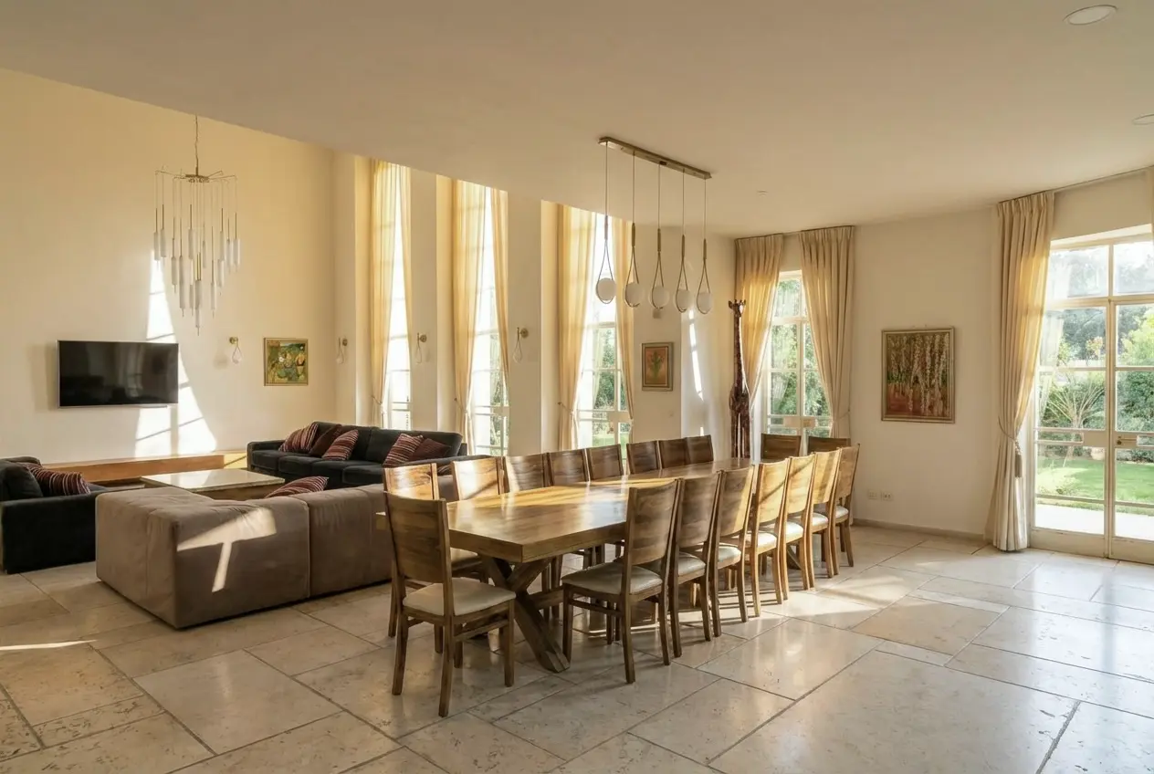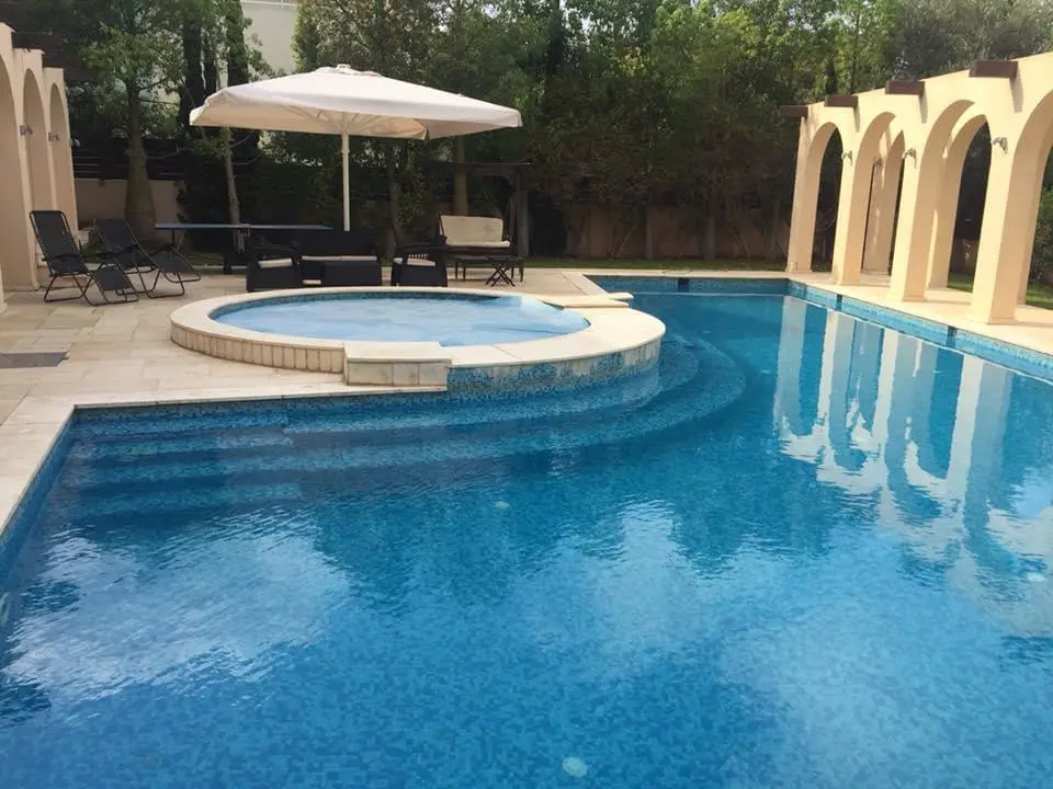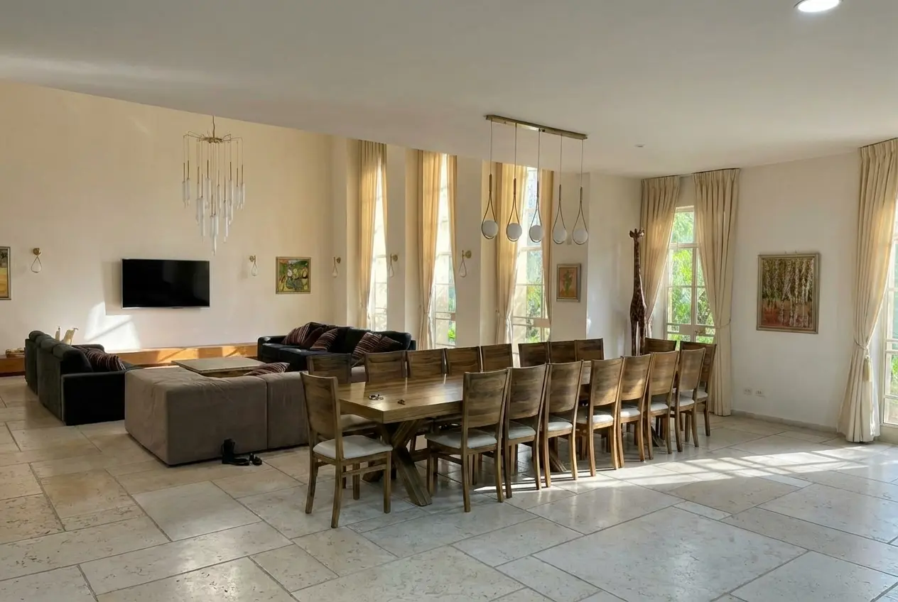 This elegant villa in Caesarea blends Greek-inspired architecture with modern luxury. Featuring a private pool (6 x 18) with a jacuzzi, expansive outdoor lounging areas, and spacious interiors, it’s perfect for a relaxing getaway. Located near pristine beaches and historic sites, it offers an unforgettable vacation experience in a serene, upscale setting.